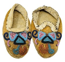 Stunning Old Vintage Native American Inuit Floral Motif Beaded Suede ? Moccasins