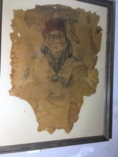 ANTIQUE Leather Hide GERONIMO PORTRAIT PAINTING 1908 SIGNED AMERICAN INDIAN