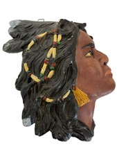ANTIQUE CHALK INDIAN HEAD BUST WALL DECOR; AMERICAN FOLKART; VGC