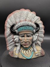 Vintage Ceramic Native American Indian Chief Bust Feathered Headdress