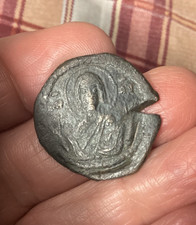 Antique religious medal Byzantine Christ Jesus c. 1100 A.D. Follis Virgin