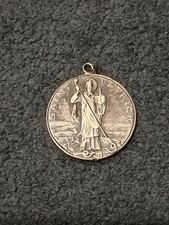 Rare Antique Creed Sterling Silver St Christopher Medal Pendant