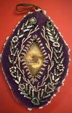 Antique Relic Reliquary Religious Embroidered Velvet Beadwork AGNUS DEI Lamb God