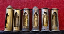 E001) 6 Antique turning brass pocket shrine statue inside : VIRGIN MARY + JESUS