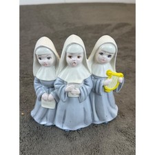 Vintage Ceramic Singing Nuns Musical Figurine Trio Music Box Mid Century Decor