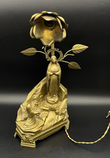 Bronze Antique French Statue Music Box Work Ave Maria religious Lourdes Mary ⭐