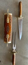 Vintage Mid century Knife & Fork Carving Set w/ Hand Carved Fish Shaped Sheath
