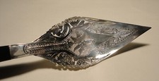 ANTIQUE Malaysian 800 SILVER Ornate ENGRAVED Bovine HORN Handle SERVING PIECE