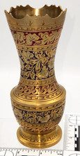 Vintage Etched Brass Metal Handmade Crafted India Vase Urn Ornate Flowers Floral