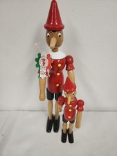 Vintage C2 Di Rainoldi Pinocchio (2) 14" & 9.5" Jointed Wooden Toy Figures Italy