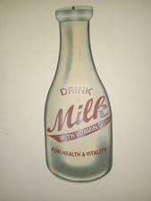 Retro Reproduction Graphic Tin Advertising Drink Milk Bottle Wall Hanging Sign