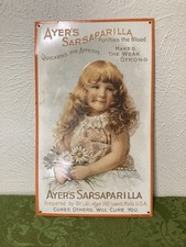 Ayer’s Sarsaparilla Vintage Metal Sign Girl Holding Flowers Advertising