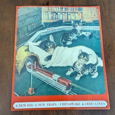 Embossed METAL Advertising SIGN CHESAPEAKE & OHIO Lines 12 1/4” X 14 1/2” Train
