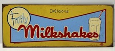 Delicious Frosty Milkshakes Mummert Metal Advertising Sign Vintage 17.5” X 6.5”