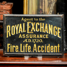 Rare Royal Exchange Assurance Antique Pressed Metal Advertising Sign Wall Decor