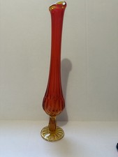 Vintage Fenton Amberina Swung Vase 12” Tall Red to Amber Art Glass L E Smith