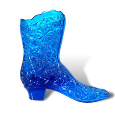 Vintage Fenton Art Glass Blue Boot Daisy & Button Shoe Decor Bud Vase