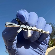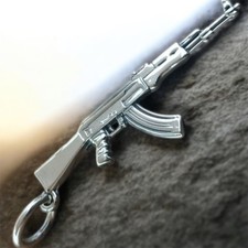 Vintage Sterling Silver 925 AK-47 Pendant Necklace Mens Rifle Gun Charm Military