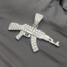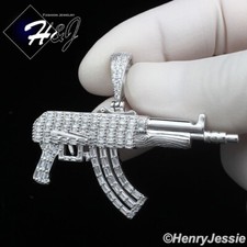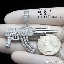 Men's 925 Silver Iced Out CZ AK47 Gun Pendant Rhodium Plated Hip Hop Jewelry