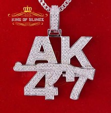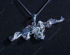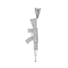 925 White Sterling Silver Charming AK47 Necklace Pendant 8.71ct Cubic Zirconia