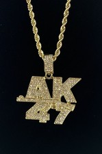 Mens Flooded Ice Baguette Choppa Ak 47 Hip Hop 24k Gold Silver Plated Pendant