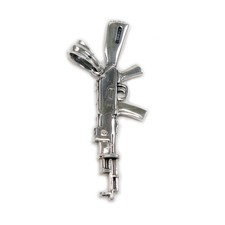 Solid 925 Sterling Silver Gun AK-47 Charm Pendant for Necklace