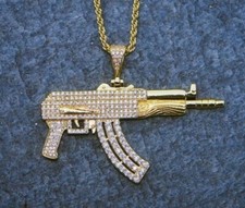 AK47 Submachine Gun Shape Hip Hop Pendant Necklace Crystal Gold Silver Jewelry
