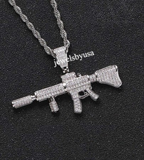 NEW Silver Machine Gun Bling Pendant W/36” Chain BIG Hip Hop Ar15 Ak47 2.5” Long