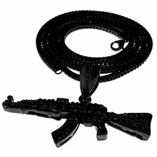 Black AK47 Rifle Gun Chain Iced Simulated CZ Pendant Hip Hop Franco Necklace 36"