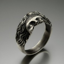 Cristian Wedding Ring Jesus Head Antique Vintage Ring for Men's Silver Plated