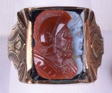 Antique Hand Wrought 10K Yellow/Rose Gold Double Roman Soldier Cameo Ring Sz 12