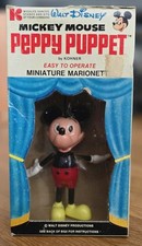 VINTAGE 1970 WALT DISNEY MICKEY MOUSE PEPPY PUPPET MINIATURE TOY MARIONETT & BOX