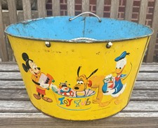 Vintage Walt Disney Productions Litho Picture Metal Toy Tub Mickey Pluto Donald