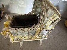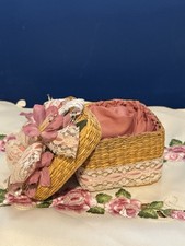 VINTAGE/ANTIQUE Wicker Mini Wooden Cradle Rocker Flower container w music box D9