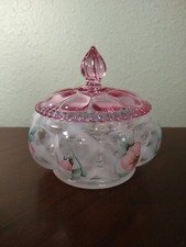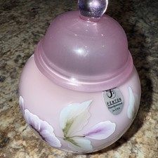 Fenton Art Glass Pink Jar with Lid Museum Collection 2002 Hand Painted Signed