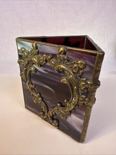 Vintage Purple Slag Glass Trinket Box Triangular Mirrored Bottom Brass Accents