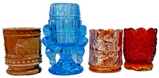 4 TOOTHPICK HOLDERS St Clair Slag & Marigold Fenton Button Bow McKee Cherubs