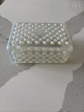 Vintage Opalescent Hobnail Moonstone Glass Trinket Box Soap Dish 4.75”