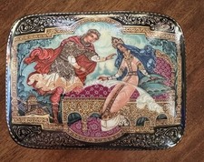 Russian Folk Tale Trinket Music Box “Princess & Elisha” Kholui 3”W&L Vintage