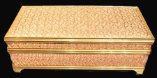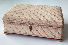 Vtg 70s Rose-Gold Brocade Hollywood Regency Jewelry Music Box 5x8 Video Read
