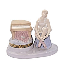 VTG Rare Spanish Style Porcelain Ballerina with Piano Medium Hinged Trinket Box