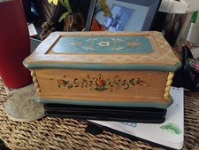 Vintage Swiss Folk Art Musical Trinket Box. Hand Painted Wood