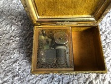 Antique Gold Music Box Trinket Crank Wind Music Vintage