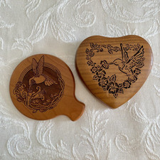 HummingBird Wood Trinket Jewelry Music Box & Carved Hand Mirror VTG Lasercraft