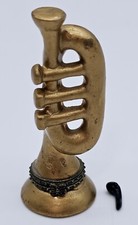 Vintage Trumpet Hinged Porcelain Trinket Box with Music Note Charm Small