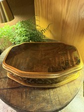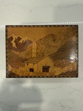 Vintage Wooden townscape Marquetry Box Wood Inlay Hinged Jewelry Box Music Box