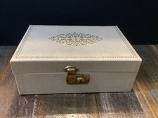 Vintage cream Multi-level Jewelry music Box Golden Accents pink Silk Interior