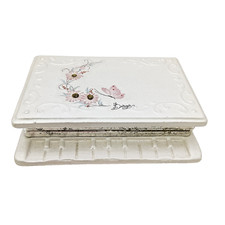 VTG Victorian Garden Jewelry Trinket Music Box Dogwood Floral Porcelain COR