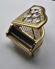 Vintage Mascot Intl Grand Piano Trinket Box Gold Tone w/ Crystal Accents
