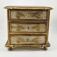 Vintage hand painted tole style wood gold jewelry music box